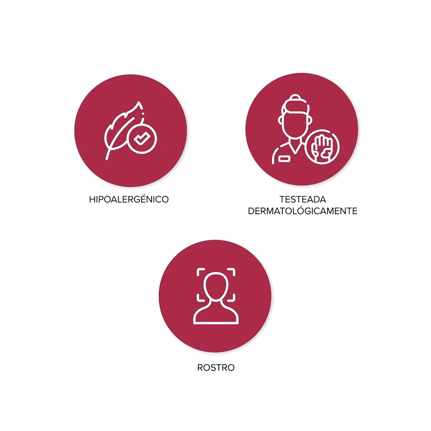 Hipoalergénica – Apta piel sensible – Testeada dermatológica y oftalmológicamente – No comedogénica – Sin TACC
