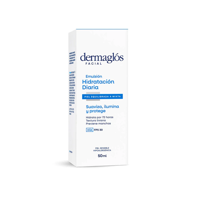 La Emulsión Hidratante de Día FPS 20 de Dermaglós proporciona la hidratación necesaria para mantener la piel suave, luminosa y con sensación de bienestar. Sus componentes normalizan la hidratación y previenen el envejecimiento prematuro de la piel, protegiéndola de los rayos solares (UVA/UVB) ya que cuenta con factor de protección solar 20 (FPS 20). Su efectiva fórmula le proporciona a la piel todo lo que necesita para mantenerse siempre protegida, suave y saludable. Apta para piel sensible. Hipoalergénica. No comedogénica. Testeada dermatológica y oftalmológicamente.
