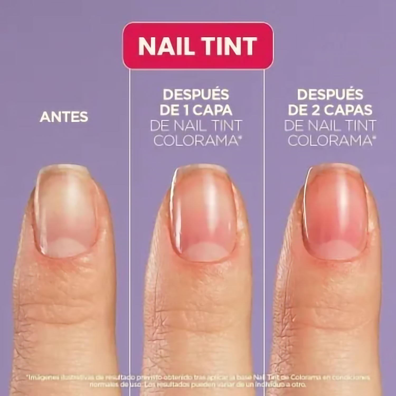 Aplicá Nail Tint de Colorama de una a dos capas, según la intensidad de brillo y color deseado. Para extra brillo y mayor duración, aplicá el Top Coat Gel de Colorama.
