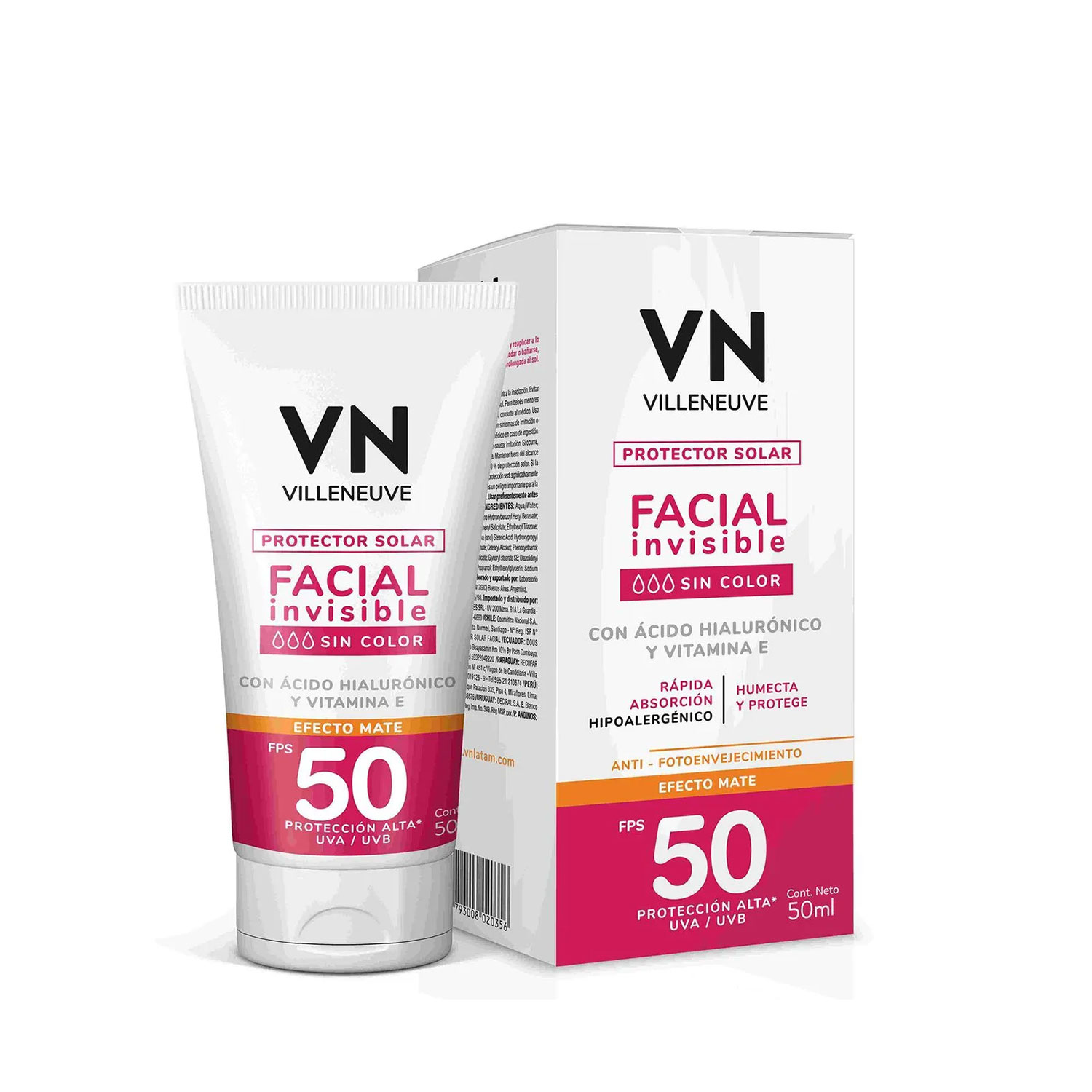 Protector Solar Facial Villeneuve FPS50 x50ml. Equilibrada fórmula desarrollada para el cuidado diario de tu piel. Combina todos los beneficios del ácido hialurónico y la vitamina E con protección.